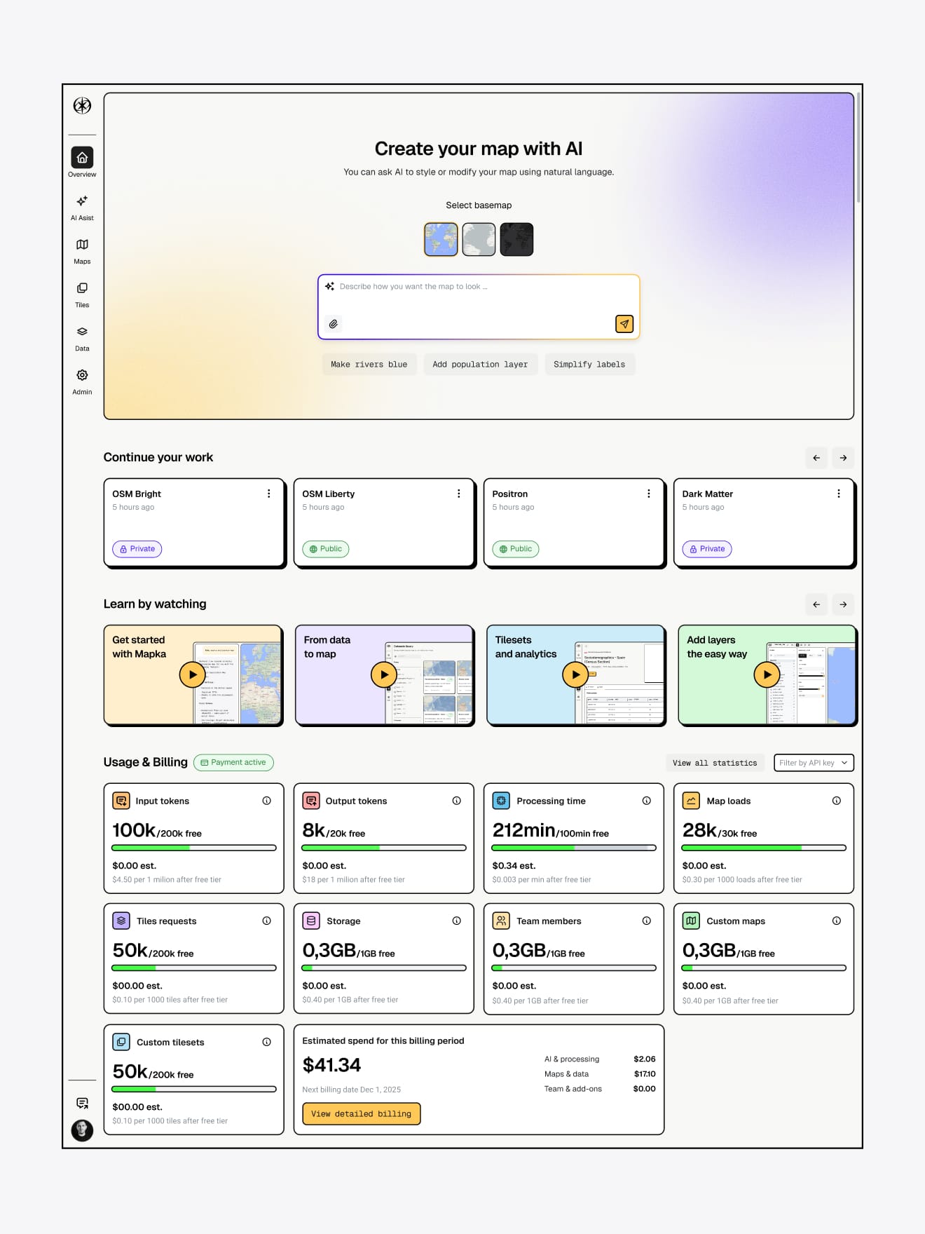 I worked closely with the founder to help define what the business was, who it was for, and how it should be positioned. I also led key parts of the messaging and copywriting, including the headline “Build maps with prompts, not PhDs.” That became central to how we explained the product.