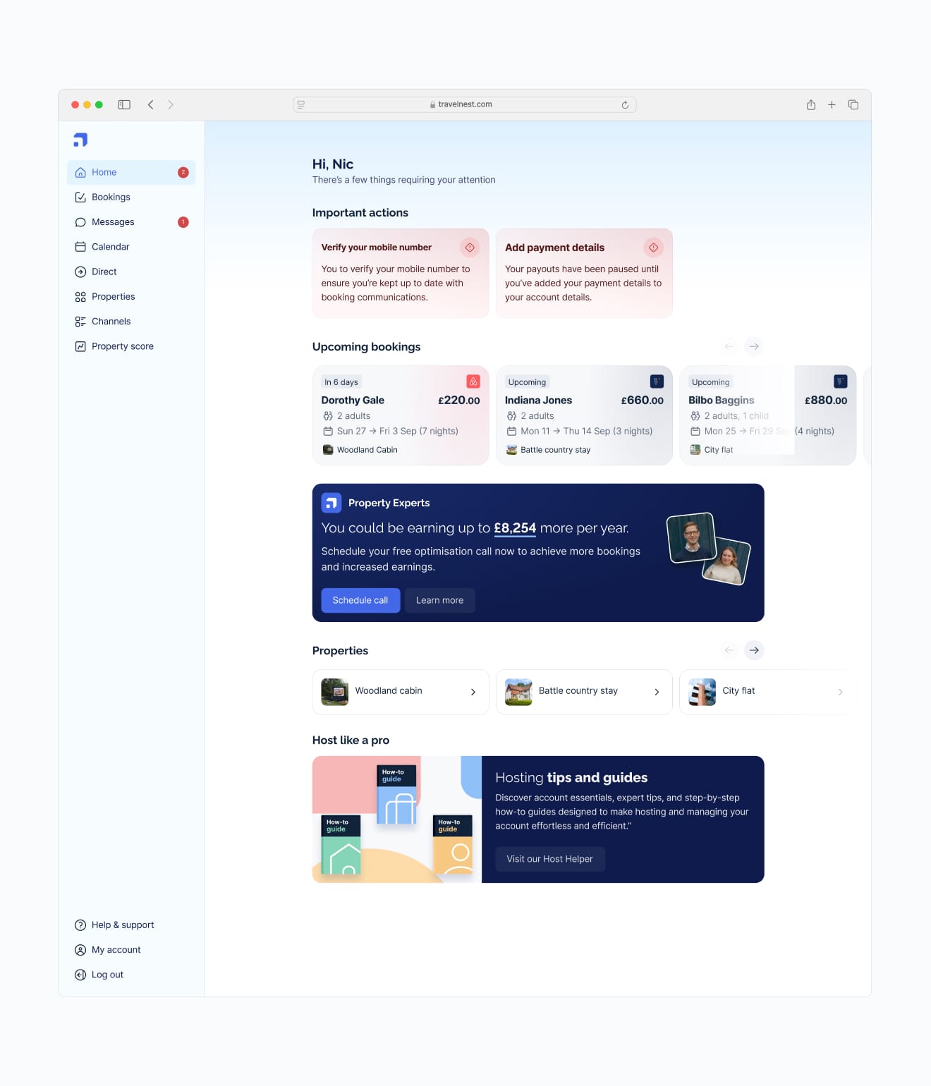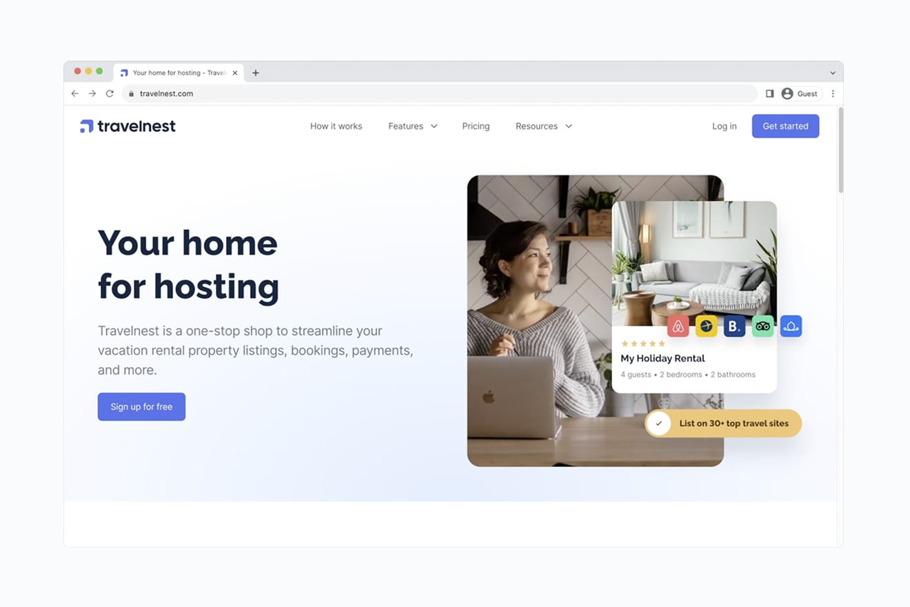 Travelnest is a SaaS platform for vacation rental hosts, helping them promote and manage their properties, bookings, and guest communication.